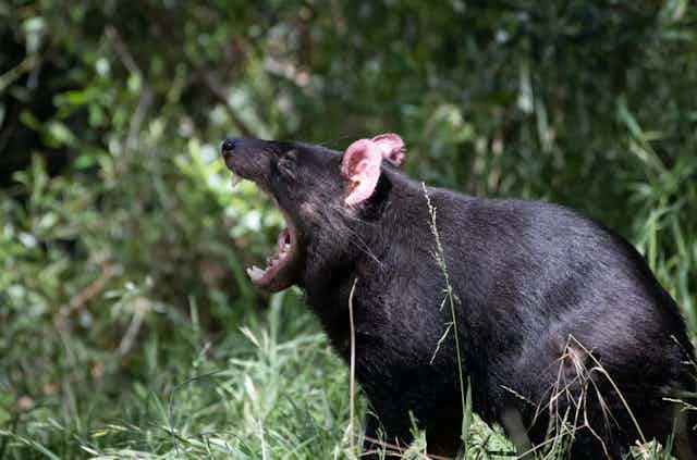 Through a series of tests and studies scientists have concluded that the Tasmanian Devil is the mammal with the strongest bite force quotient on earth. They are also quite aggressive animals and will squabble and fight with each other which is also contributing to the spread of the disease. The can open their mouths in a very wide gape.